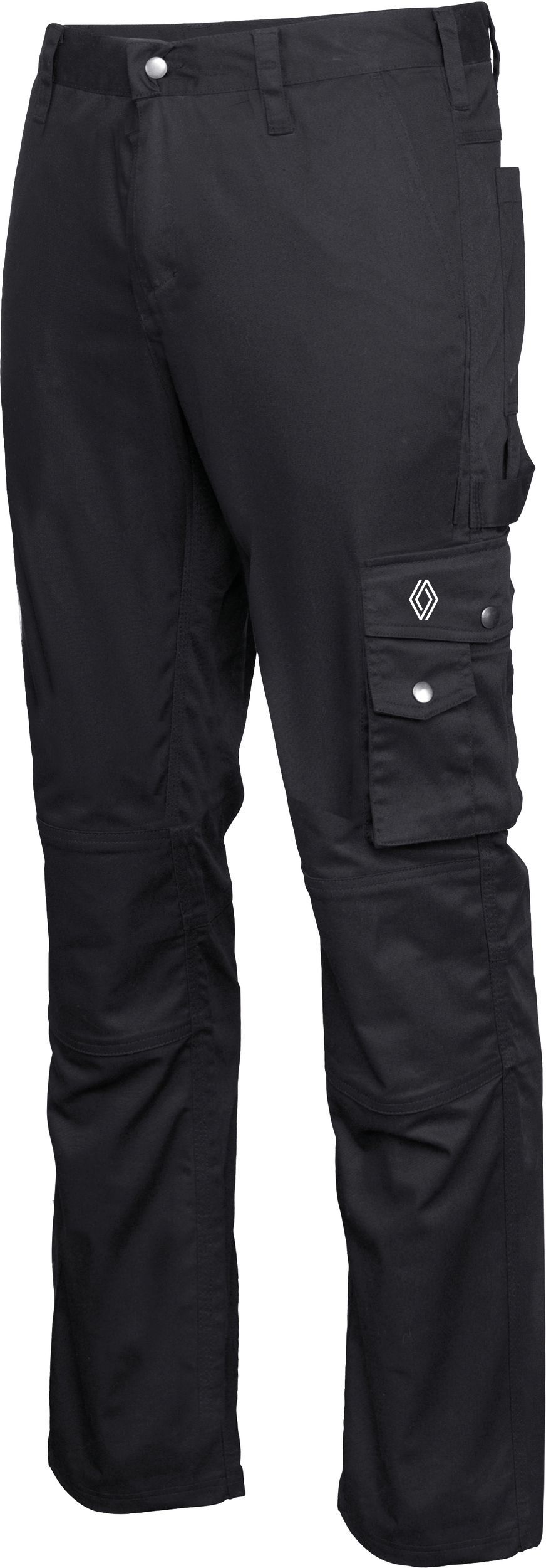 Couture de l’entrejambe renforcée par une triple surpiqûre. 3 poches avant, 3 poches arrière et 1 poche sur le côté. Genoux préformés.